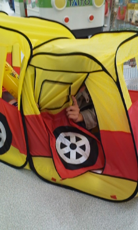 売り物で遊んじゃってますw店員に見つかったら間違いなく連れて行かれるでしょう。